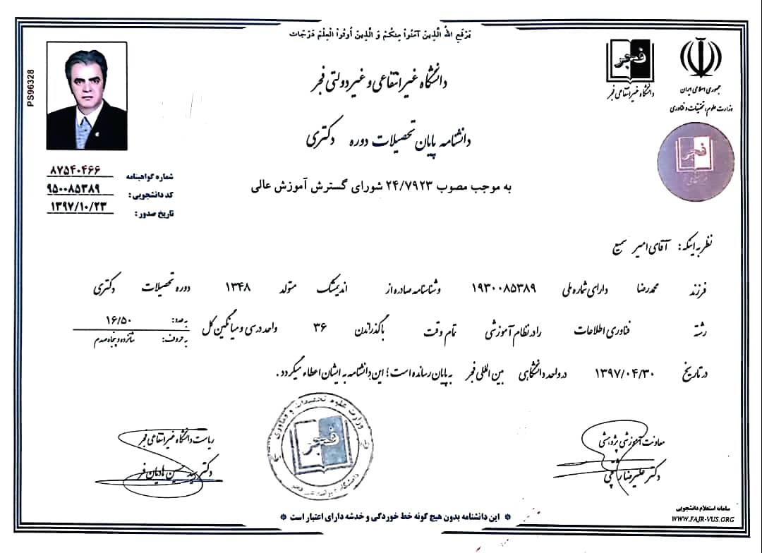 کارشناسی ارشد کاربرد لیزر در هنر 1375